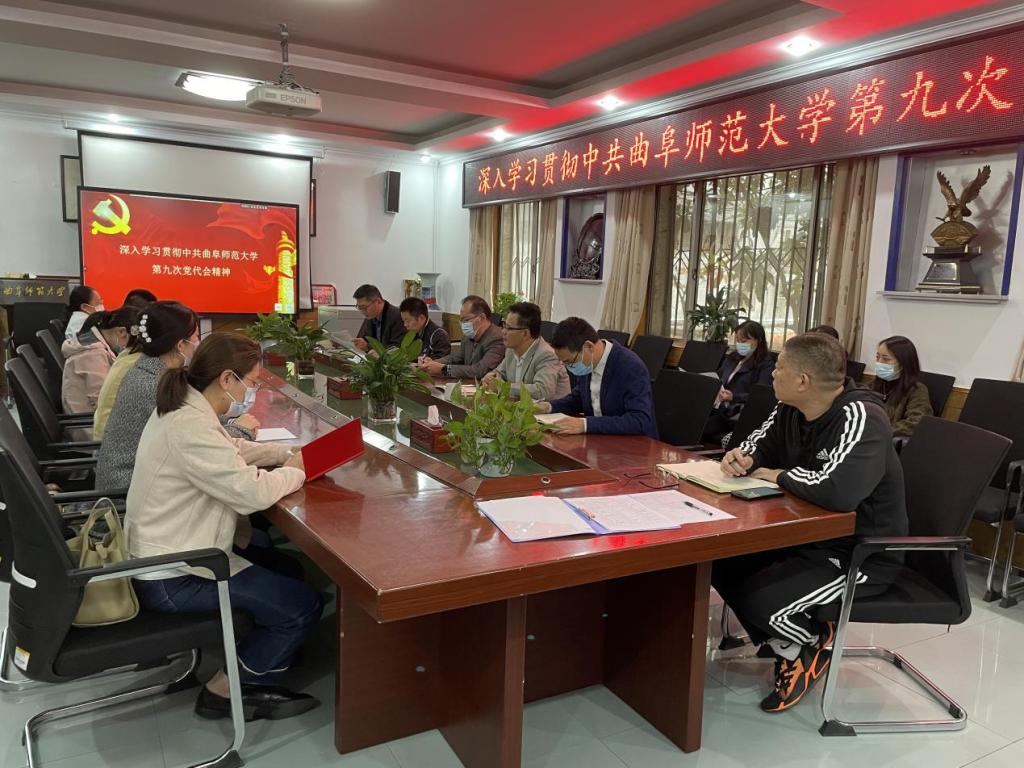 齐军同志介绍了学校第九次党代会的总体情况,从大会主题、党委报告的核心内容等几个方面领学了党委书记邢光同志在学校第九次党代会上作的《强化特色追求卓越为建设世界知名的高水平孔子家乡大学不懈奋斗》的报告,全体与会党员进行深入学习和研读。徐瑞同志、孙超同志作为出席学校第九次党代会的代表分享了自己的参会体验和感受。